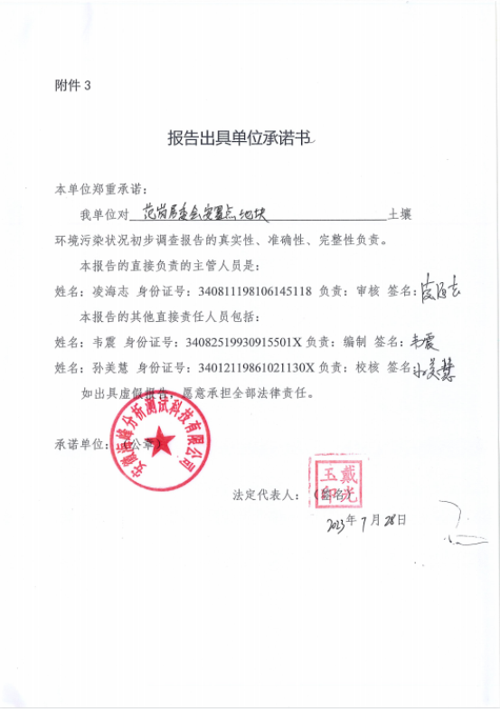 报告审核 | 凌海志 | 高级工程师 | 340811198106145118 | 13329011861 |