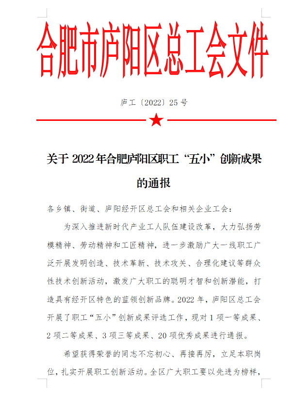 2022年合肥市劳模工匠人才创新工作室名单公布,我单位张勇劳模工匠人才创新工作室荣列其中。